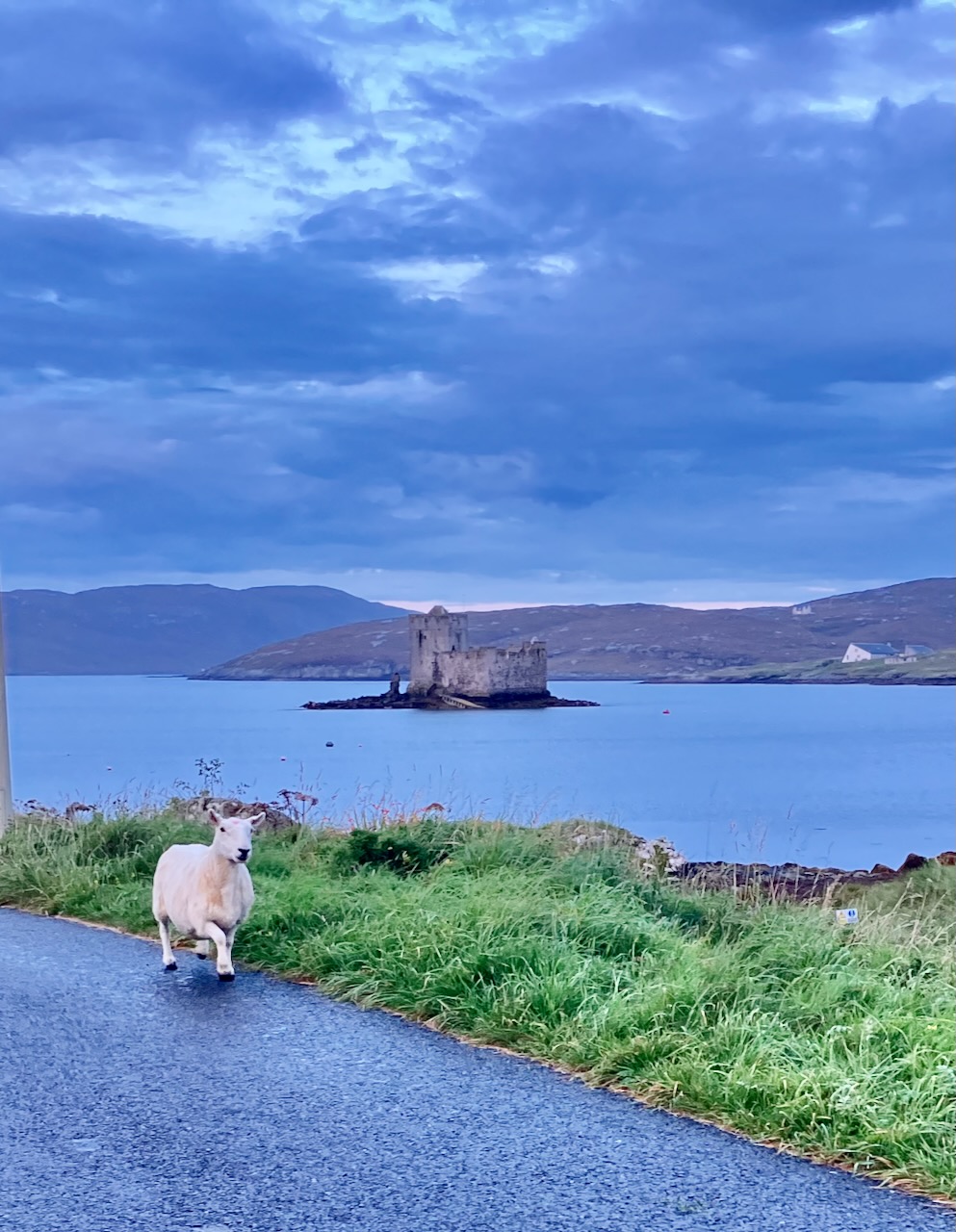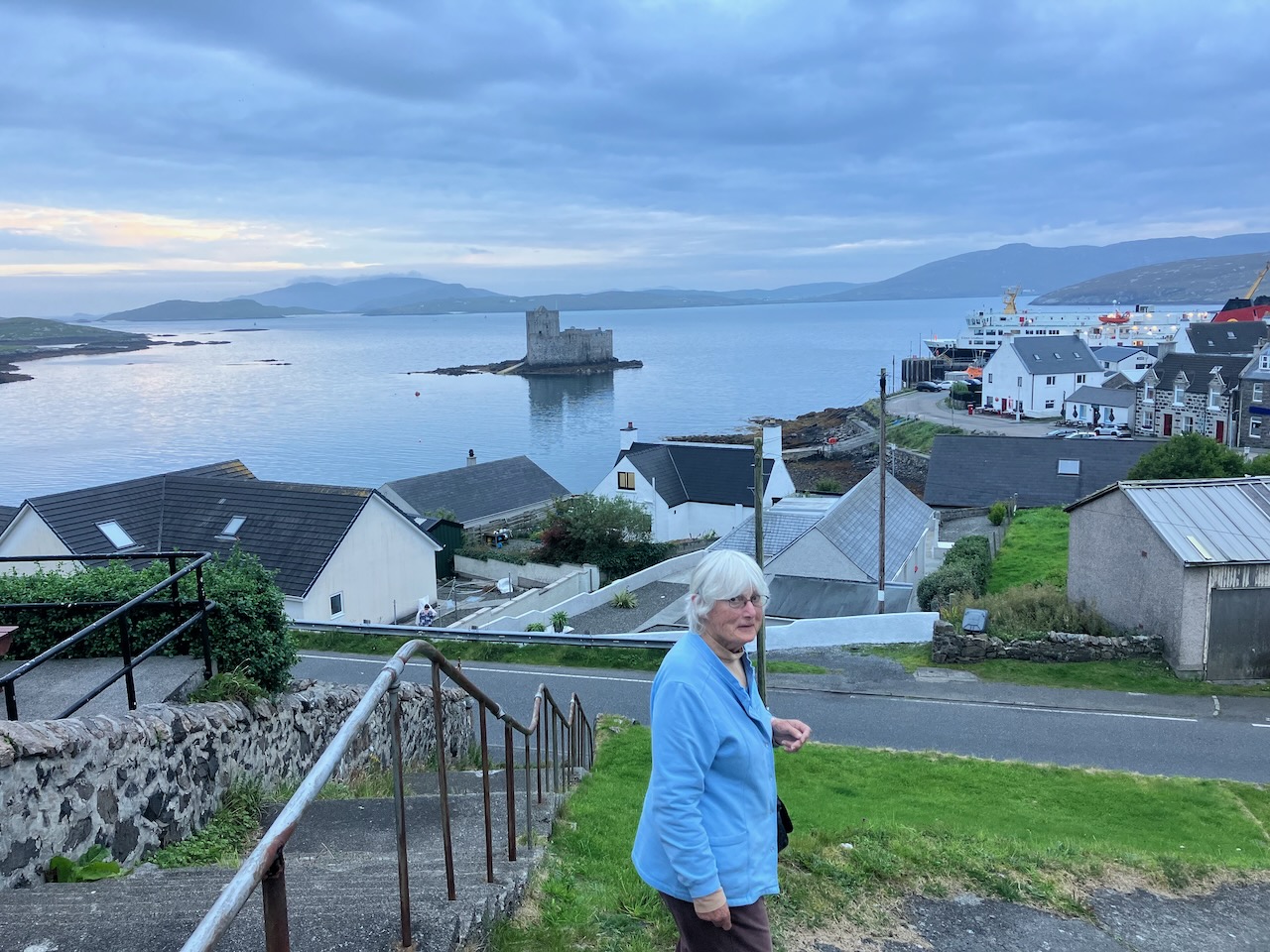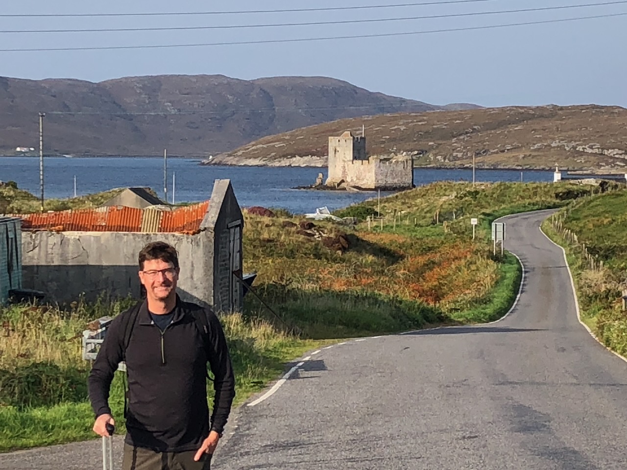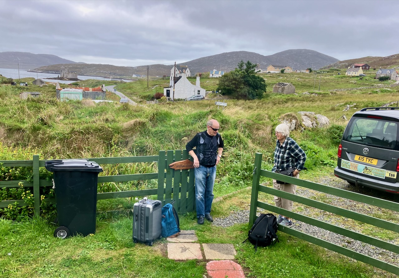 View from our AirBnB with our taxi driver and guide Asty (short for Alistair). The castle appears in the background, an ever present landmark as we explored the area around Castlebay. Asty was born on the island and his first language was Scottish Gaelic. Asty told us that many still spoke this ancient idiom, and that his daughter helps keep the tradition alive by teaching Scots Gaelic to students in Glasgow.
