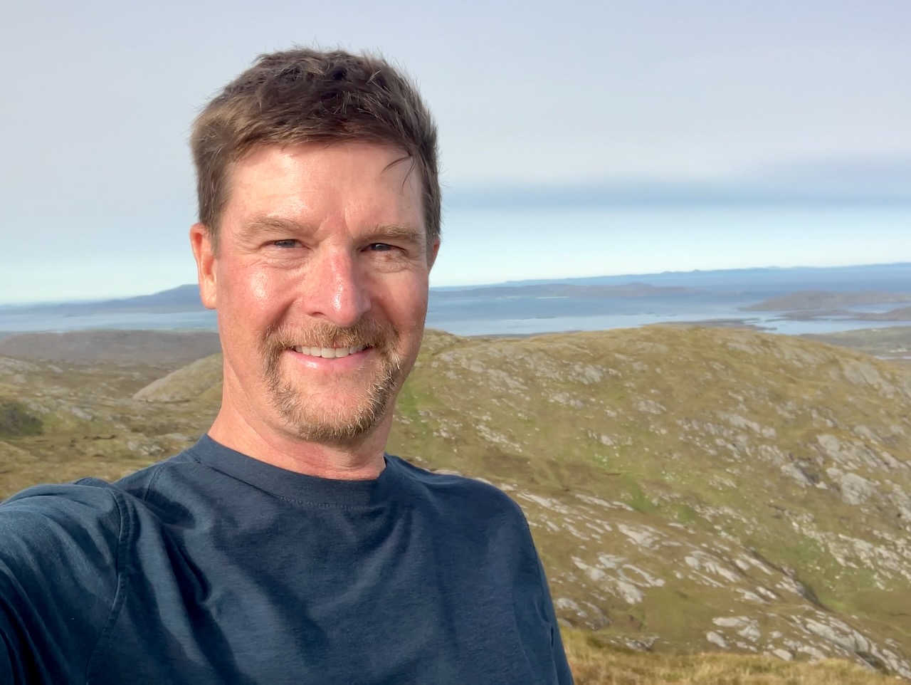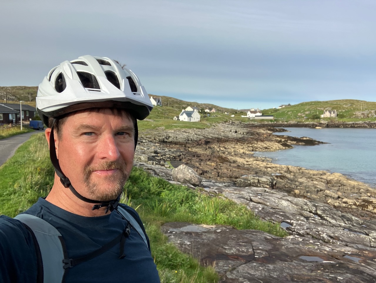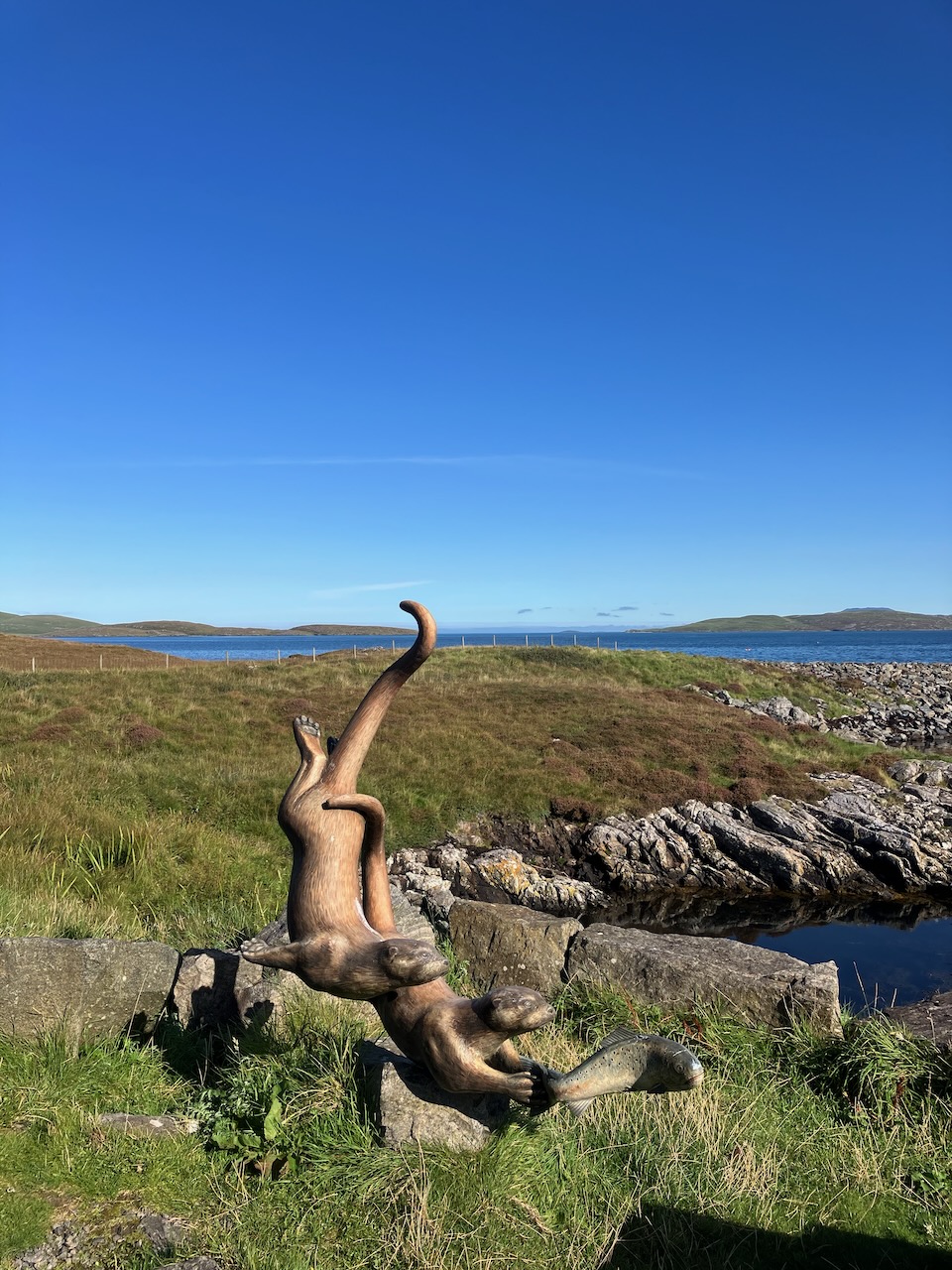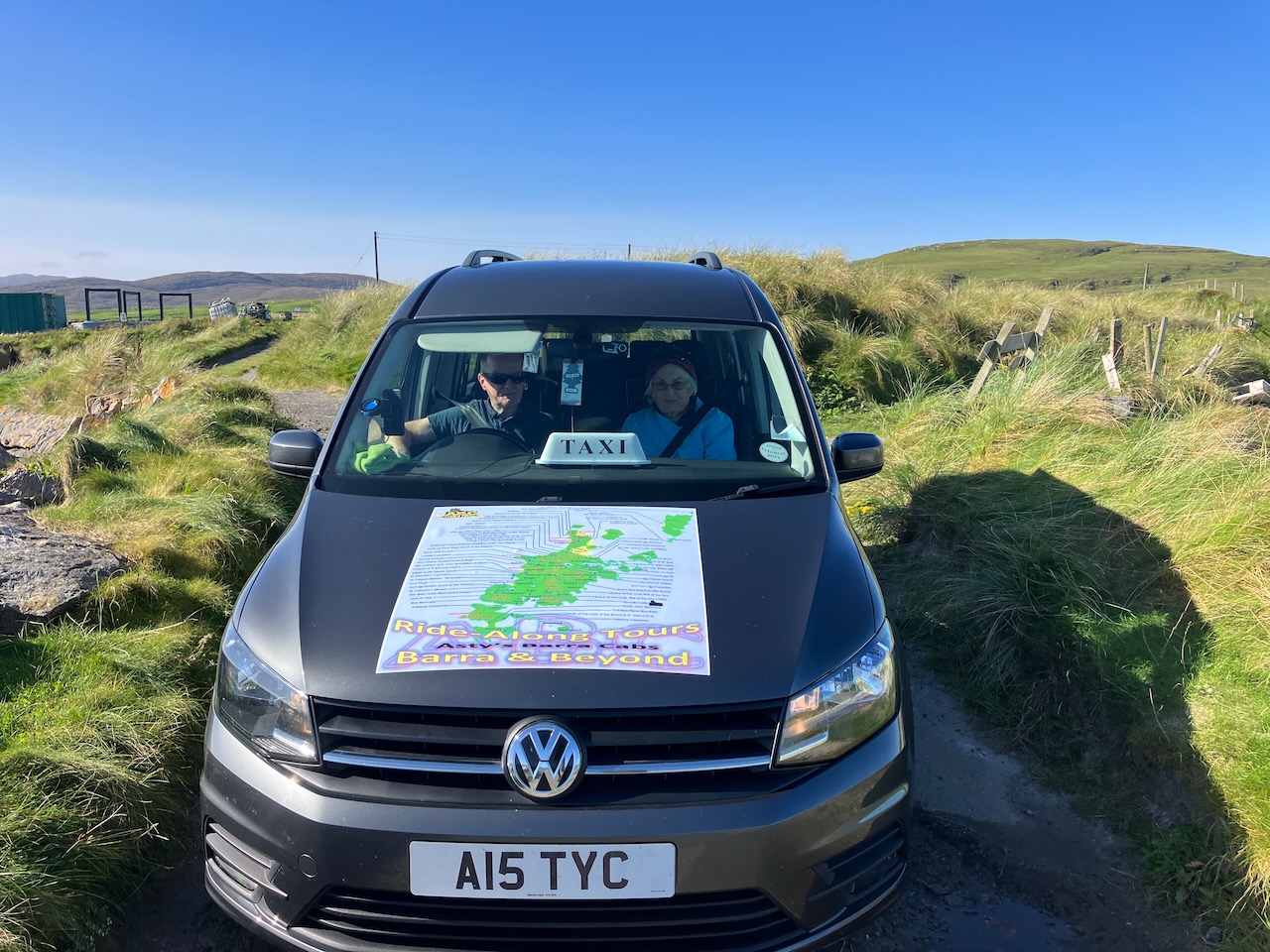 View from our AirBnB with our taxi driver and guide Asty (short for Alistair). The castle appears in the background, an ever present landmark as we explored the area around Castlebay. Asty was born on the island and his first language was Scottish Gaelic. Asty told us that many still spoke this ancient idiom, and that his daughter helps keep the tradition alive by teaching Scots Gaelic to students in Glasgow.