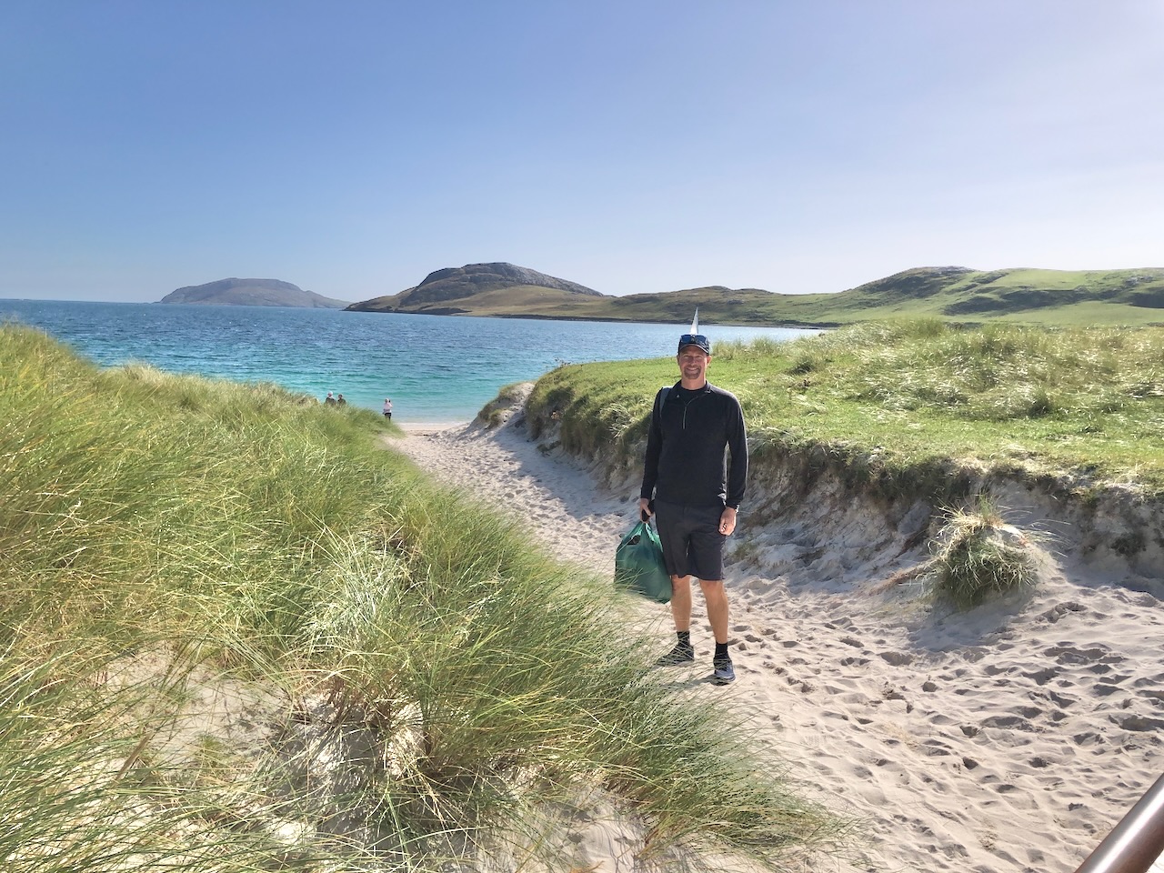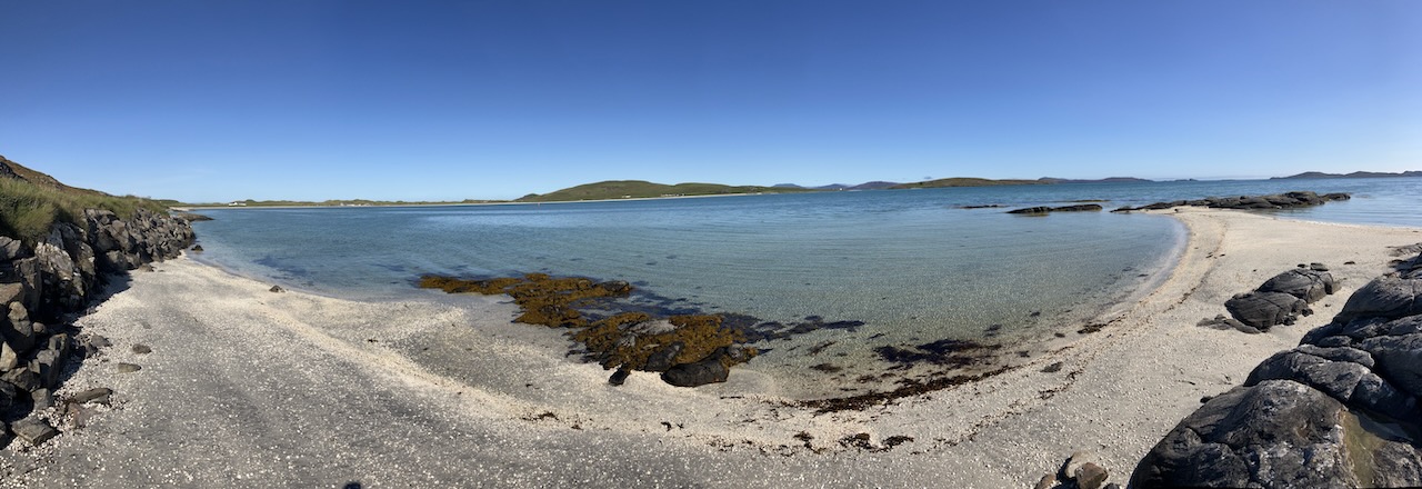 Ready for my swim at one of the twin beaches at Vatersay