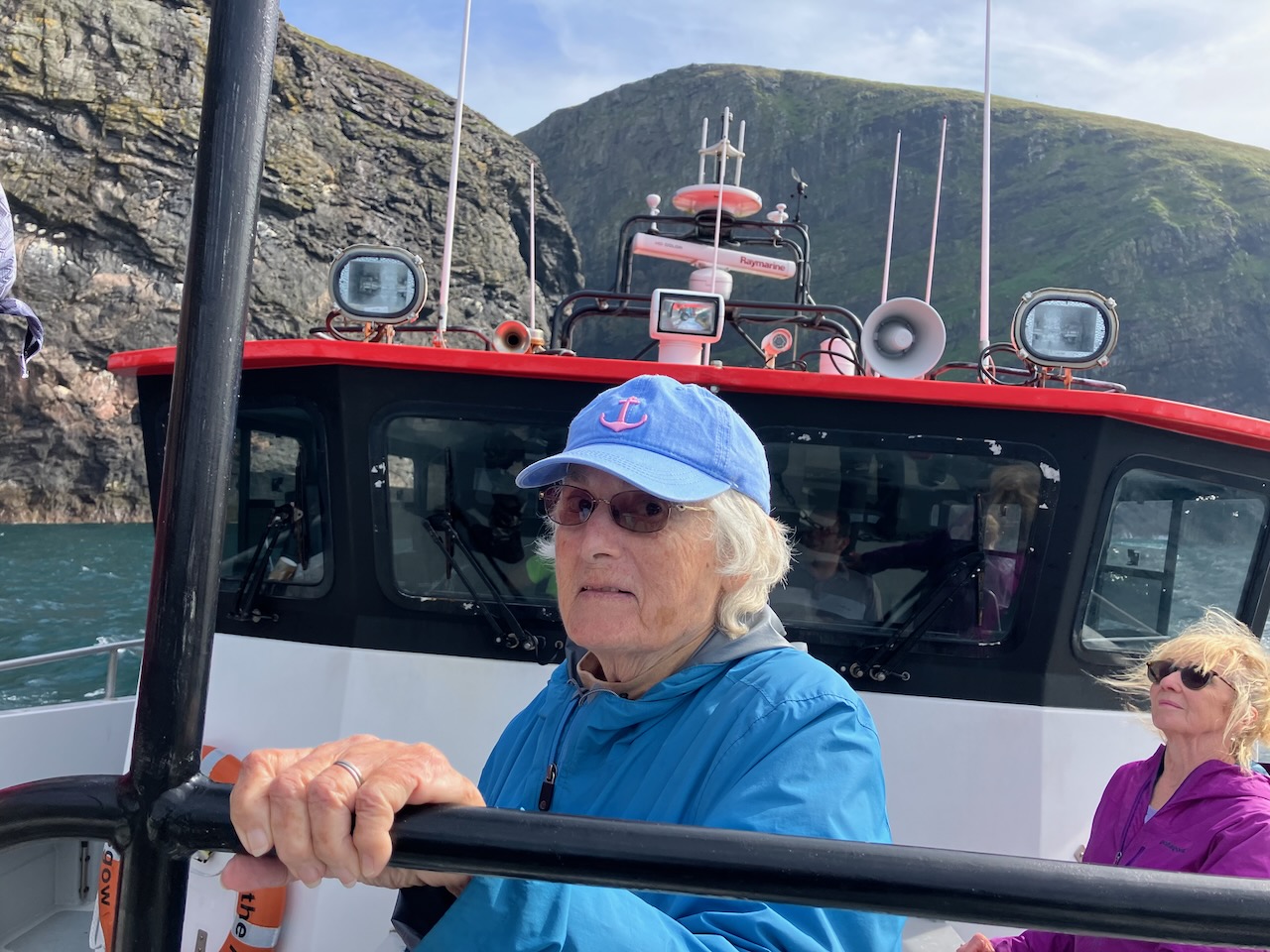The rest of us ventured forth, exploring the island. While I hiked to the Barra Head lighthouse with a fellow passenger from Bonn, Germany, I returned early to keep Omi company. Regrettably, I missed the opportunity to hike past the lighthouse, reaching sheer cliffs teeming with seabirds, a Neolithic stone circle, and an exclusive tour of the lighthouse. We heard about this later from another passenger and her daughter – both were descended from early Mingulay island pioneers. While we had absconded, leaving Omi bobbing on the waves in the boat, Omi was given tea and biscuits from the captain and crew. Omi relished captivating stories from one of the captains, who had explored Barra Head as a boy and had ancestral ties to Mingulay. Residents had abandoned these islands, partly due to the perilous conditions of launching and landing boats, making evacuations during medical emergencies fraught with danger.