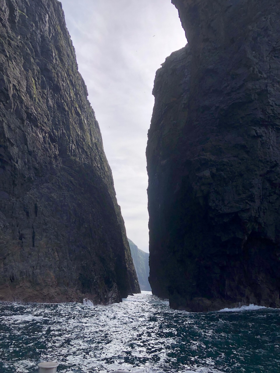 Our boat journey to Mingulay took us to a locked gate at the marina, just minutes before our scheduled 9:00 departure. As the rest of the group boarded, we braved the brisk coastal wind. A crew member called out, “Mingulay?β stating the obvious. He let us through the gate and we stepped onto the twin hulled boat. As the vessel picked up speed, the wind and waves grew more formidable. To disembark, we had to navigate a narrow path to the platform near the prow, balancing precariously on a 5-gallon water jugβa feat Omi could not attempt. Her disappointment was palpable.