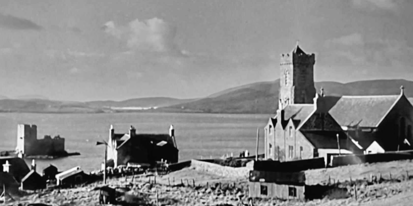 Still from 1949 movie Whiskey Galore showing the same church and the Kisimul castle. Omi and I watched Whiskey Galore at the recommendation of our taxi driver Asty. The plot line is based on a true story and involves a shipwreck at neighboring Eriskay island in which 10,000 bottles of whiskey in the cargo risked being lost to the waves, all during a time of whiskey rationing during the war. Much of the precious cargo was illegally recovered by the islanders in a daring nighttime operation. In the movie, the salvage crew was pursued by a hapless English military official who was ostensibly in charge, portrayed in comic fashion. We enjoyed it!