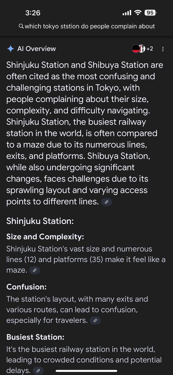 Later we took to the subway and managed to get lost temporarily in the Shinjuku train station which is the busiest in Japan and perhaps the world. The Shinjuku station has multiple levels and poor signage, leading to confusion, according to us and the internet.