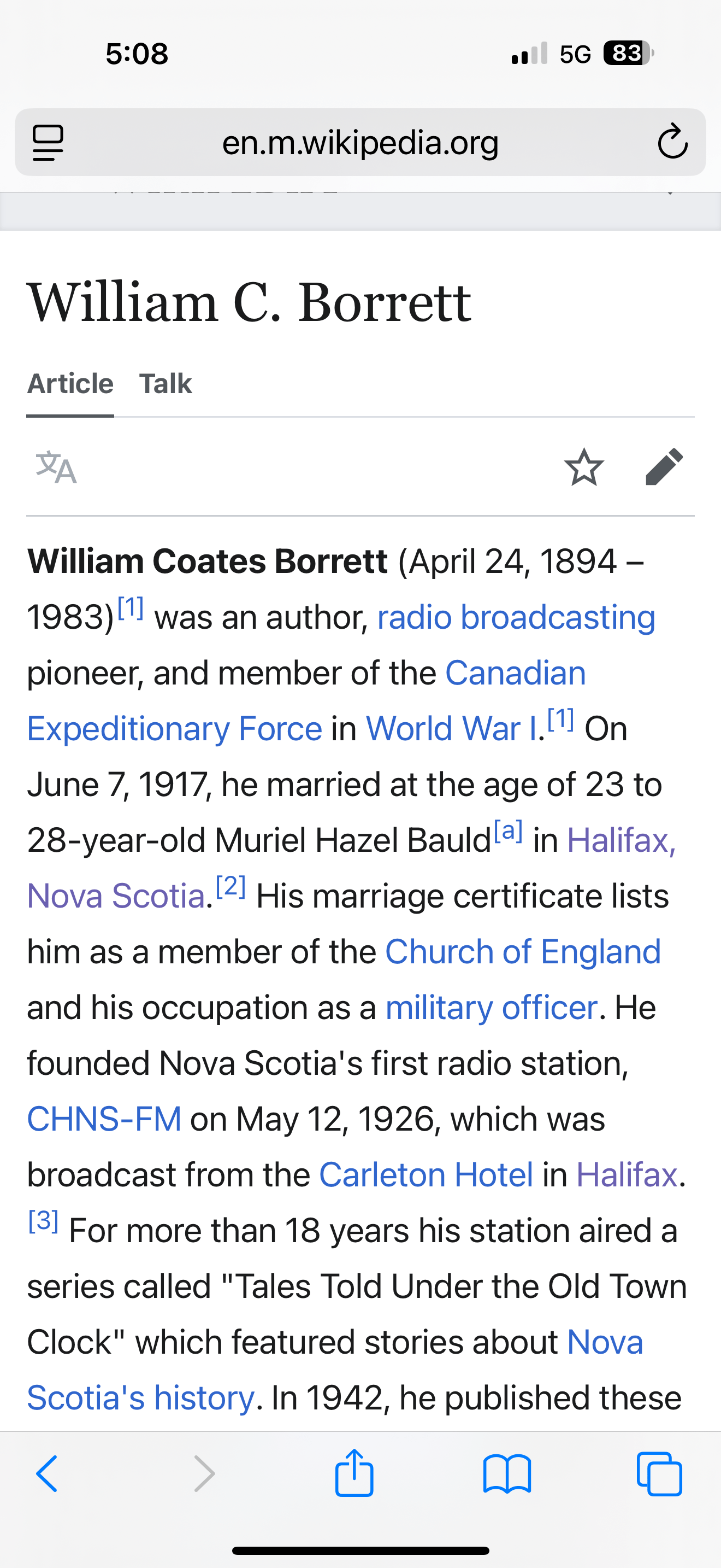 The major hired our grandfather Fletcher Coates at the Halifax radio station