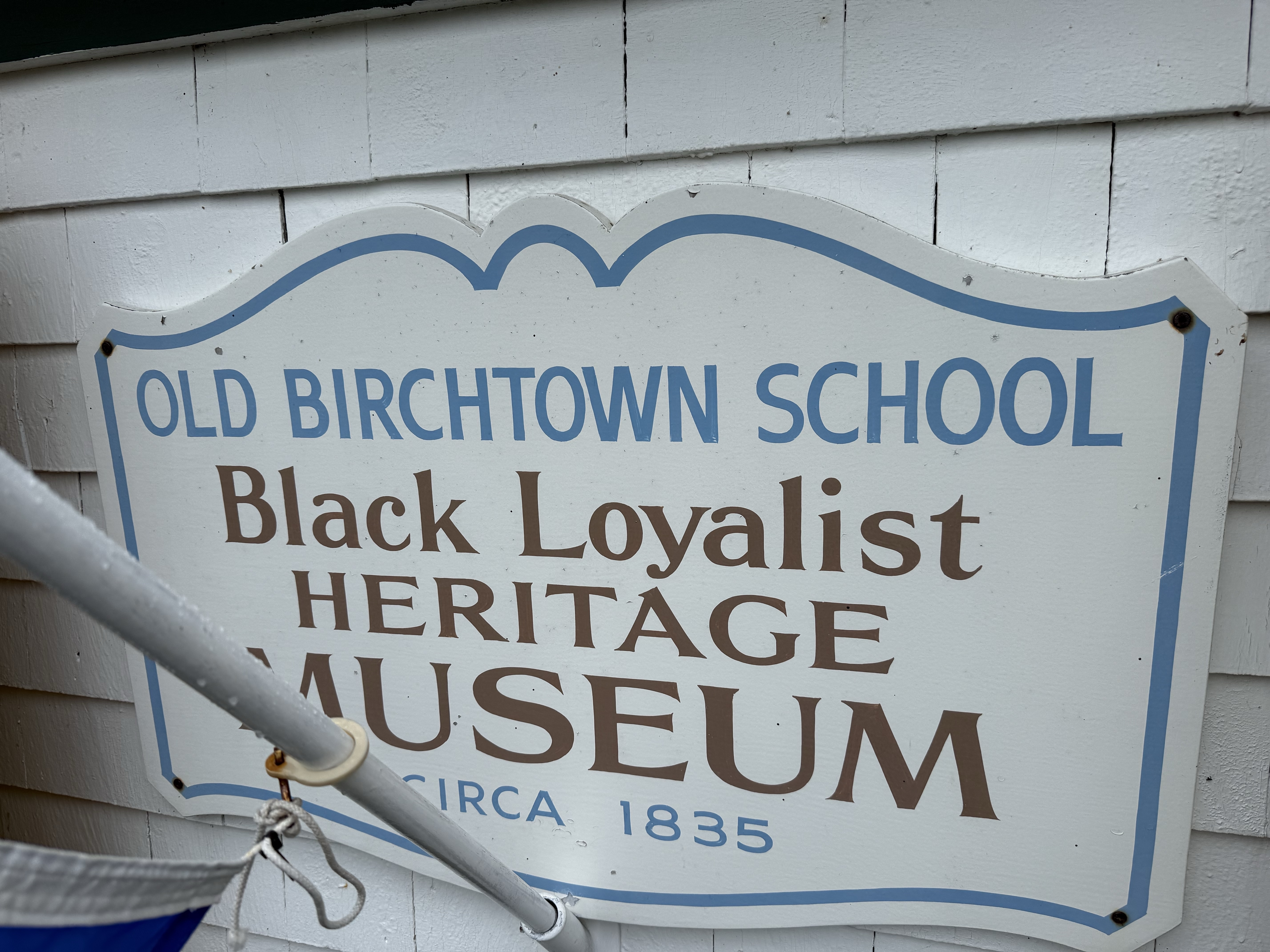On the way from Summerville center to Yarmouth we made a stop at the schoolhouse in Birchtown , now a museum about the settlement of Black Loyalists there. These were people from the southern slave-holding colonies who had joined the British side against the revolutionaries.
